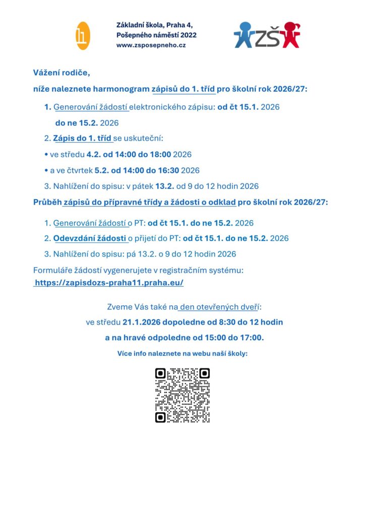Informace k zápisům – ZŠ Pošepného